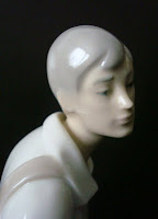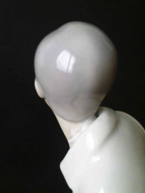 Restauration d'une figurine émaillée dont la tête a été cassée, accident fréquent pour ce genre de pièce :